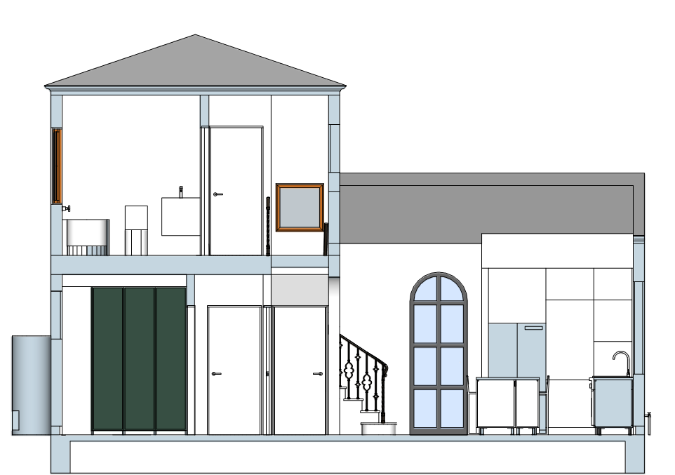 1200 sf, 2 story ADU using conventional framing vaulted roof.